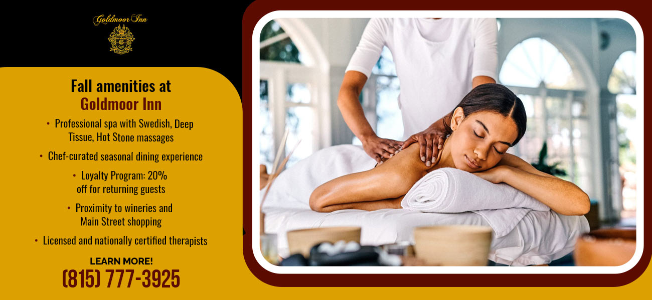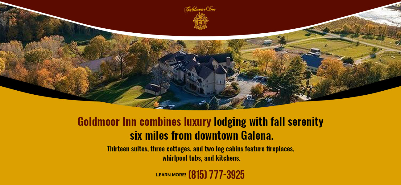 For travelers searching for the best among Galena, IL hotels and seeking calm, cuisine, and couple-friendly spaces, our countryside location delivers the season at its best. With foliage, vineyards, thoughtful service, and unhurried evenings by the fire, fall feels both festive and restorative here. To learn more or book a reservation, reach out to us at (815) 777-3925 or reservations@goldmoor.com to learn more.